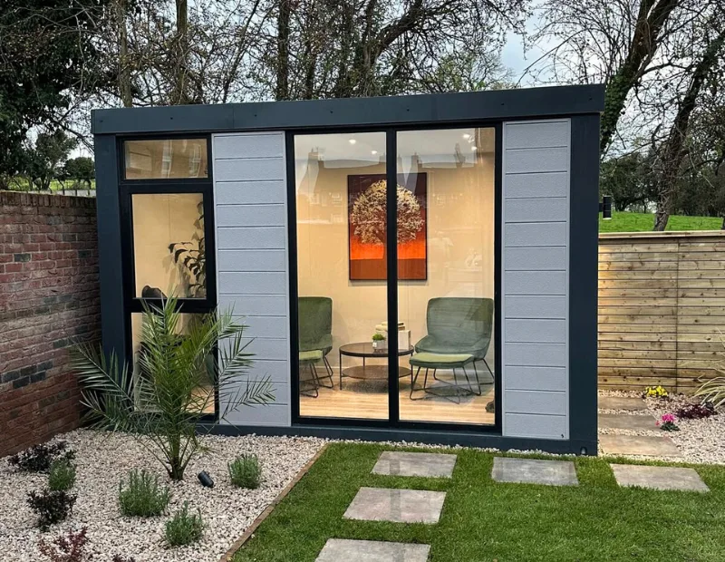 Our luxurious garden room, The Ember, is fully insulated and features premium triple-glazed windows—designed for year-round comfort. It comes complete with internal electrics, making it a perfect space to relax, work, or create in style.